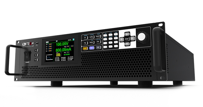 IT8100A/E系列高速大功率直流电子负载提供了广泛的操作方式以及功能,可以让用户直接通过5寸触摸屏、键盘和旋钮来进行方便快捷的操作。简洁直观的UI界面,可以直接显示各项参数的设定和量测,并提供输出波形预览等。中英文双语界面,人性化的设置可以满足测试中多种量测需求。