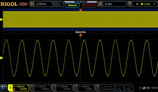 同时观察并准确测量两路频率相差很大的信号,全内存硬件测量可以在具有339.6k个上升沿的波形中测得准确的频率值。