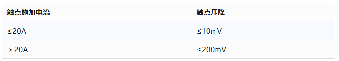 3、触点接通和断开负载最多10次之后测试触点压降。