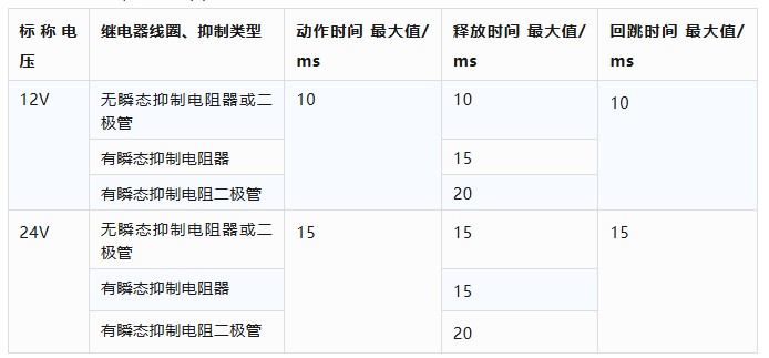 继电器的动作,释放和回跳时间应该符合下表要求。