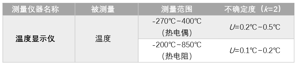 开拓了本中心新的校准领域——热学领域,校准能力如下(表一);