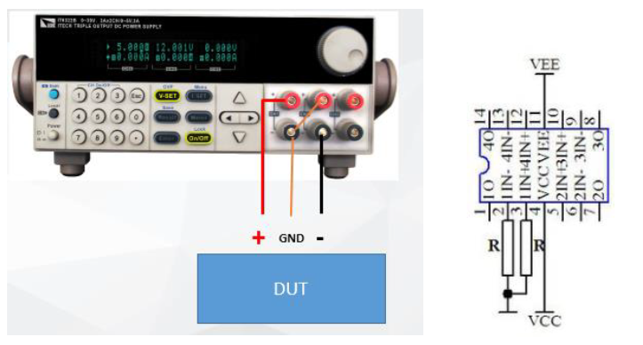 有一些待测物是两路输入,一路为正一路为负,且两路输入共地。则可采用以下接法,比如IT6322B产品经常用于双电源运算放大器的供电。