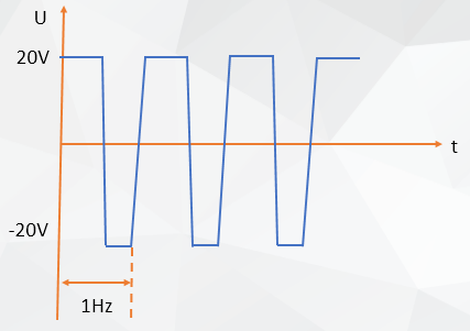 下图是正负供电切换的示例图。先为+20V供电,然后20V供电连续切换频率为1Hz。若采用交流电源供电,交流电源的一般为45Hz~500Hz或者10Hz起,无法满足1Hz需求,而直流电源更适用于低频段的波形模拟。