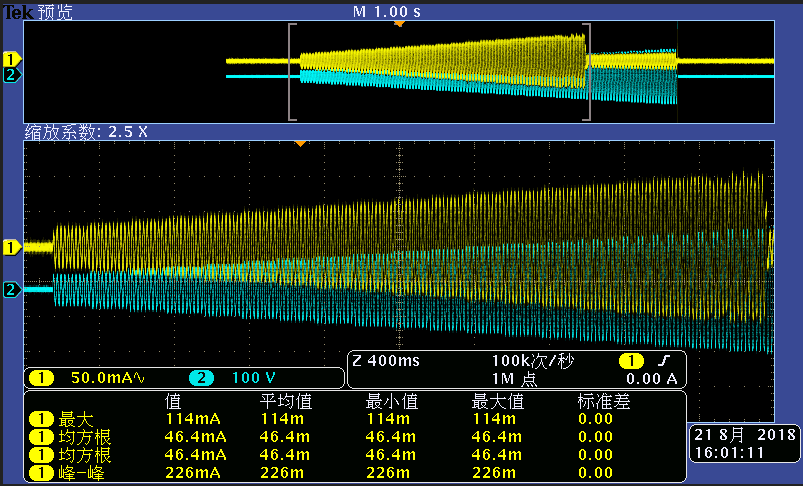 如上测试需求(3)通过IT7321的SWEEP功能,示波器抓取的波形如图二所示: