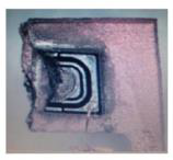 (3)如果在可控硅两端施加了过大的di/dt,就会导致控制极的金属层穿透(见图4)。