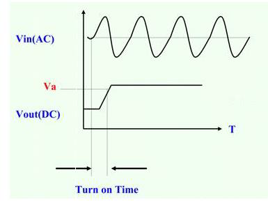 开机时间(Turn On Time):输入电压开始供电给电源时到电源输出的电压达到要求电压值Va时的时间,如下图1所示。