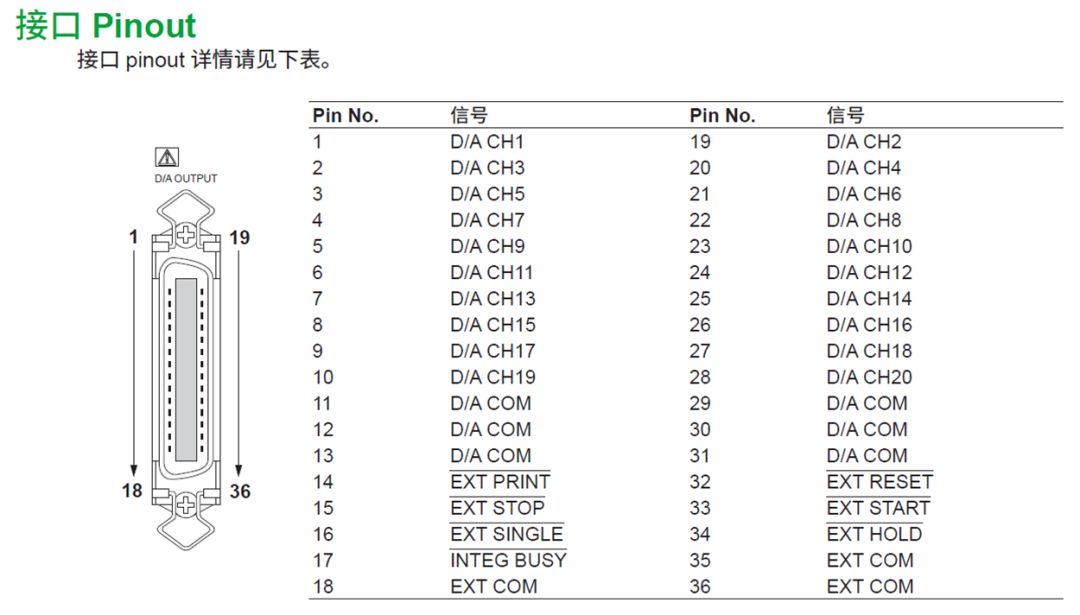 具体接线和DA输出的接口定义如下图所示: