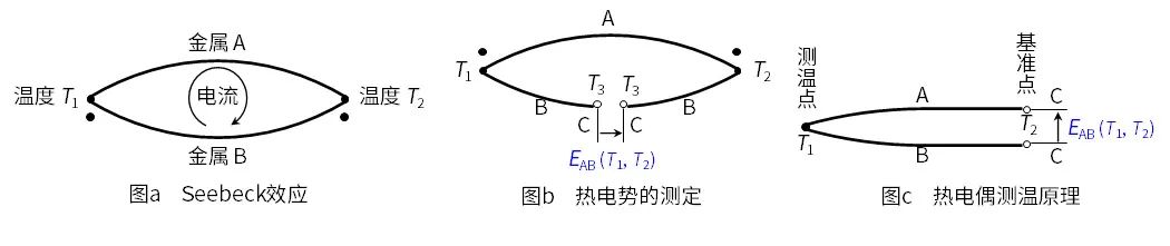 热电势EAB只与金属和温度相关。而与金属的长度,粗细或两端以外的温度无关
