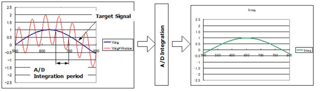 在对模拟量进行A/D转换时,先对模拟信号进行积分运算,如下图所示:
