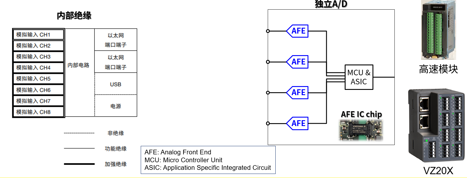 这种功能,以加强型绝缘保证通道间隔离及内部电路安全,而各通道独立A/D可去除由于通道间切换环节造成的影响。