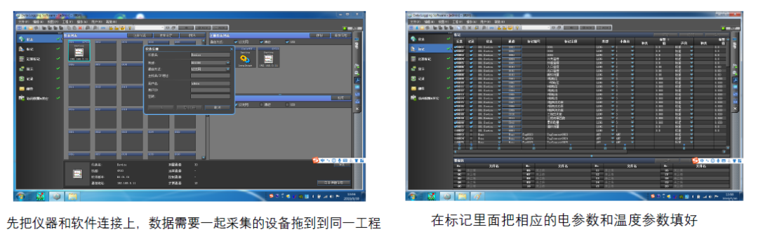 如果我们的功率分析仪和数采都没有上面说的选件并且不想进行升级,可以购买横河的数据采集软件GA10,这个数据采集平台可以把功率分析仪的数据和数采的数据一起采集分析。连接图和方法二一样,把两台设备通过通信端口和PC进行连接,连上以后进行下图操作即可。