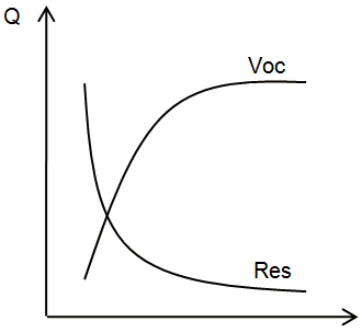 电池充放电过程中,电池容量越大,对应电池开路电压越高,电池内阻越低;反之,当容量下降,电池开路电压随之下降,内阻随之上升。电池容量、开路电压与电池内阻之间的关系可有下图2表示: