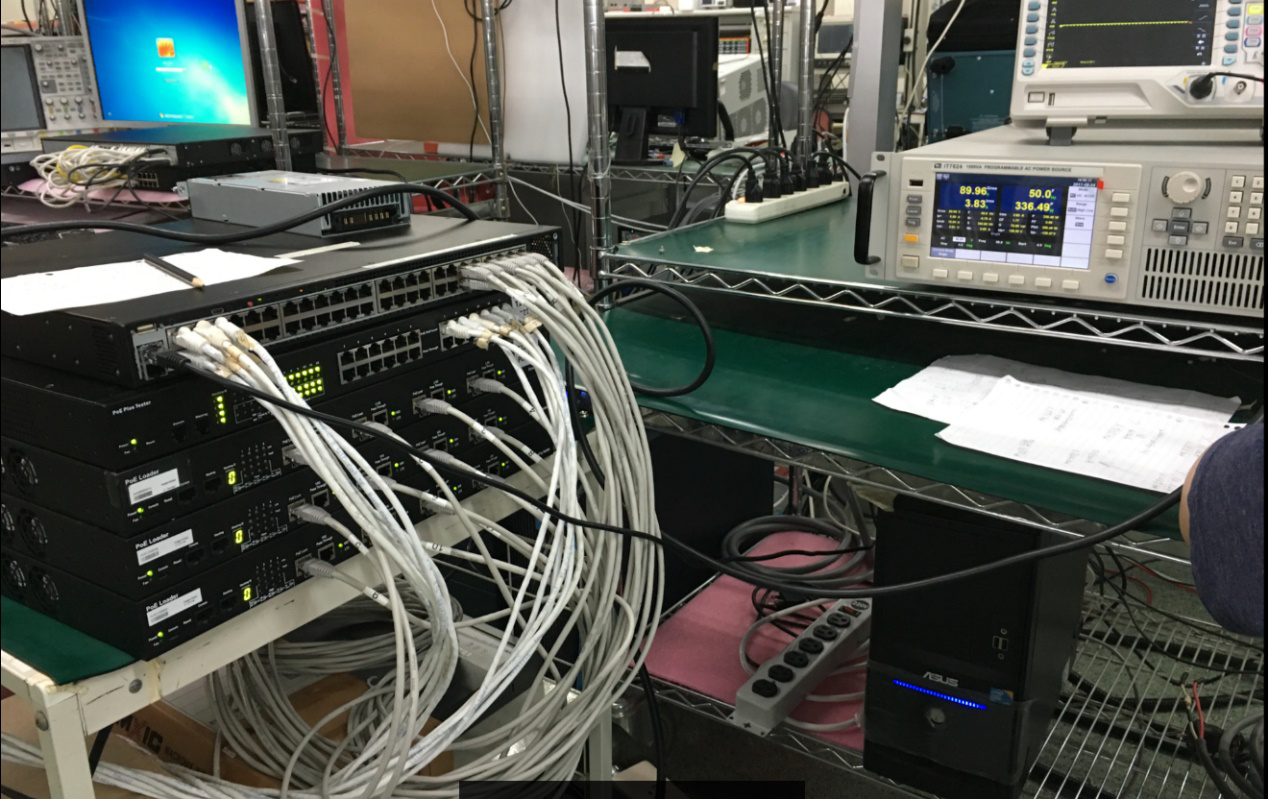 PoE又分为供电端(Power Sourcing Equipment,简称PSE)和受电端(Powered Device,简称PD)。为了确保供电端PSE可稳定的供电给受电端,就必需对PSE进行各种输入电源能力的测试。由于在PoE制定的标准中,从原始的IEEE 802.3af-2003到经过改良的IEEE 802.3at-2009 PoE标准都没有对PSE的输入电源规范测试标准,所以便只能由各网络设备商自行订定测试规范。