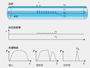 图1. FBG原理及响应光谱(取自横河光谱仪产品手册)
