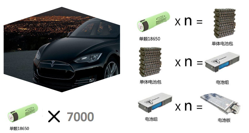 某知名品牌电动汽车的动力电池由很多小的锂电池组成。整车差不多有7000颗这样的电池,分别组成电池包,再组成电池组,最后组成电池板。(如图2)