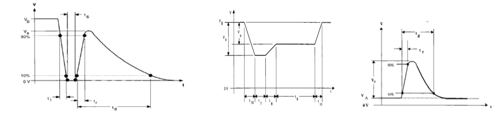 SAEJ1113-11 为美国机动车工程师学会发布的汽车电源线路瞬态抗干扰能力测试标准,美国机动车工程师学会是国际上最大的汽车工程学术组织,在汽车领域拥有世界上最庞大、最完善的标准体系。新增波形覆盖了SAEJ1113-11 中Test 2B:模拟直流电机在点火开关关闭瞬间电压波形的瞬态变化测试;Test 4:模拟汽车12V 24V 电压下当起动机啮合瞬时电压扰动;Test 5:模拟在线路腐蚀,接触不良或者发动机在运转时,电池的连接被断开,发电机电路仍然存在负载下的瞬态效应,以测试发电机性能。