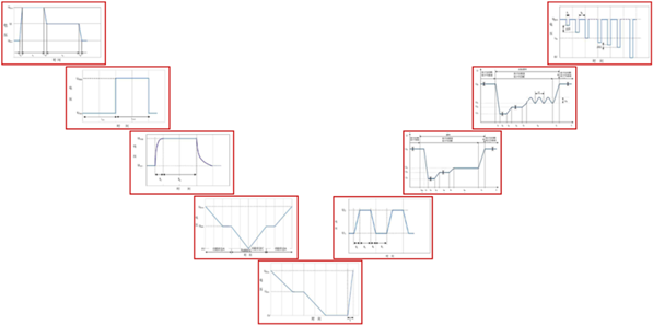 艾德克斯IT6500C系列宽范围大功率直流电源原有DIN 40839和ISO 16750-2中的Starting Profile、Reset、Short Drop测试波形,为了扩大该测试功能的覆盖面,新增了ISO 16750-2、ISO 21848、SAEJ1113-11、LV124等标准的测试波形。